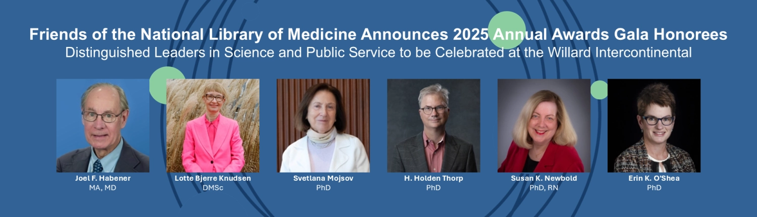 The Friends of the National Library of Medicine annual Awards Gala celebrates advances in public health, medicine, and health communications, as well as the individuals and organizations dedicated to these causes. The Gala brings together representatives from the public, professional and business sectors in health care to show their support for the extraordinary work of the National Library of Medicine. We hope you will join us for this meaningful evening.