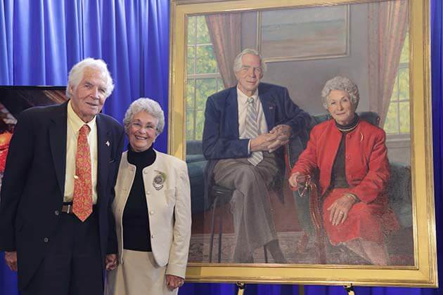 Dr. and Mrs. Lindberg pose next to their official portrait during…